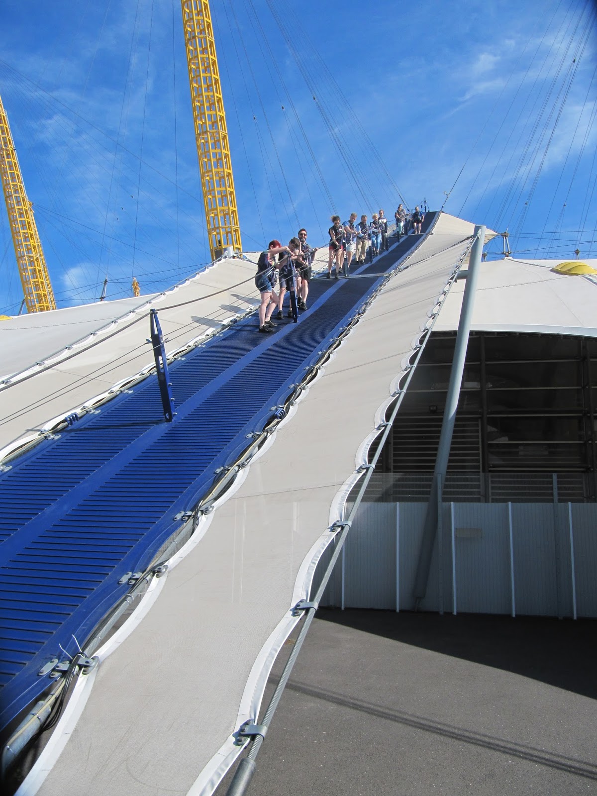 The structure is an exercise in sacred geometry, btw. The canvas dome has 12 supporting struts (one for each month of the year), is 365m across (for the days of the year) and 52m high (for the weeks). And Up At the O2 are celebrating their 5th anniversary on the 21st June (Summer Solstice) although the first public event within the canopy was actually staged on 24th June 2007 ... which is St John's Day, the traditional Midsummer.